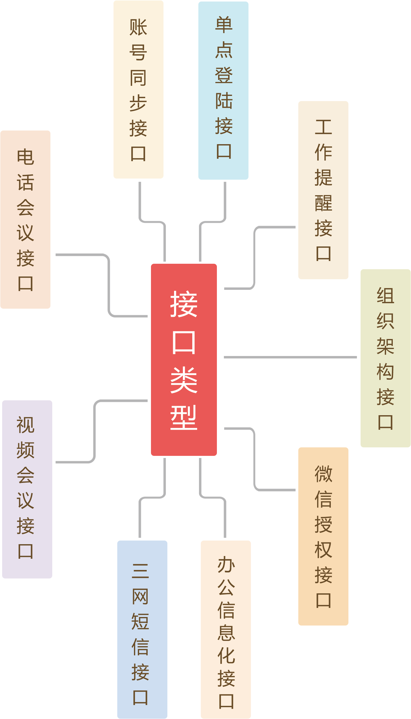 支持Web Service接口,支持多种第三方接口,可与多种系统无缝集成,例如单点登陆、组织架构同步、用户同步、三网短信、微信授权等。