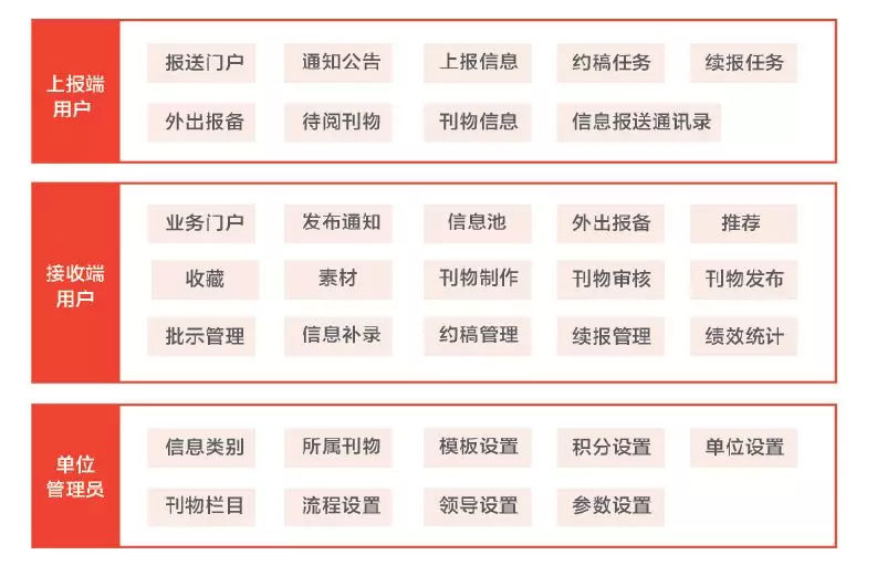 信息报送系统是用电子化手段代替传统的传真、电话、邮件等介质,实现各级单位之间的重要信息、简报、专报、文件等信息的下发与上报,进行信息采编、发布及约稿管理,提高工作效率、加强各级部门之间(横向和纵向)的业务交流与信息共享。实现信息上报、信息采用、刊物制作、刊物送审、刊物发布、积分统计等功能的信息管理与服务平台。