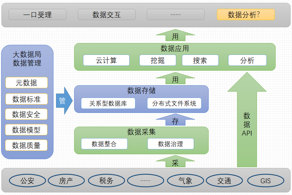 政务大数据平台总体上可以用四个字概括:采、存、管、用。