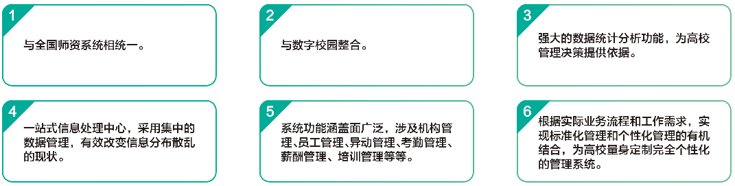 致力于为高校人事管理提供服务平台,通过对众多高校人事管理模式的分析,吸取各家之所长,站在人事管理与人力资源服务的双重认知基础上,开发的高校人力资源管理系统是应用于学校管理职工的信息化系统。高校人力资源软件,运用信息化平台,整合人力资源规划、人事档案、招聘、培训与发展、考勤、考核、薪酬、员工关系管理、异动调动管理、行政管理、流程管理、门禁一卡通管理,实现人力资源管理的系统化、科学化和高效率。